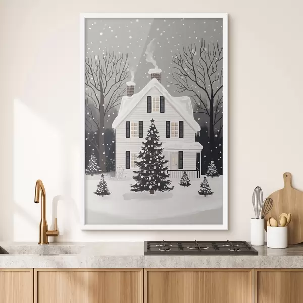 Affiche Ville d'hiver, sapin décoré, Noël, forêt, belle maison f41371