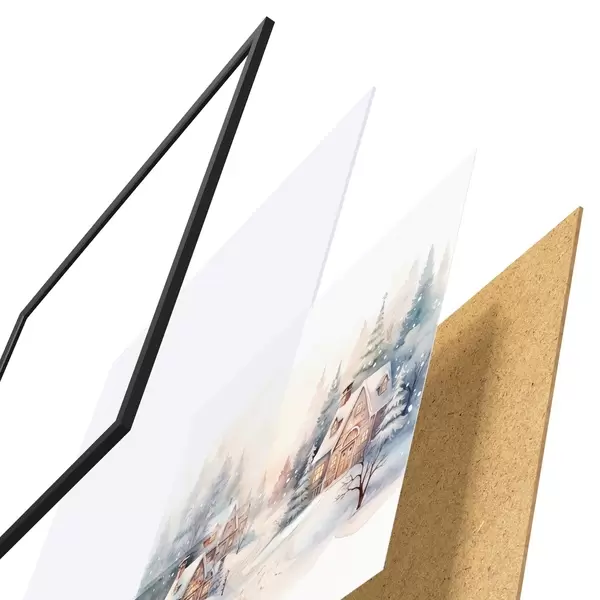Le poster se compose d'un cadre, d'un plexiglas, d'une image imprimée et d'un support en aggloméré. Le poster peut être immédiatement accroché au mur grâce aux fixations au dos.