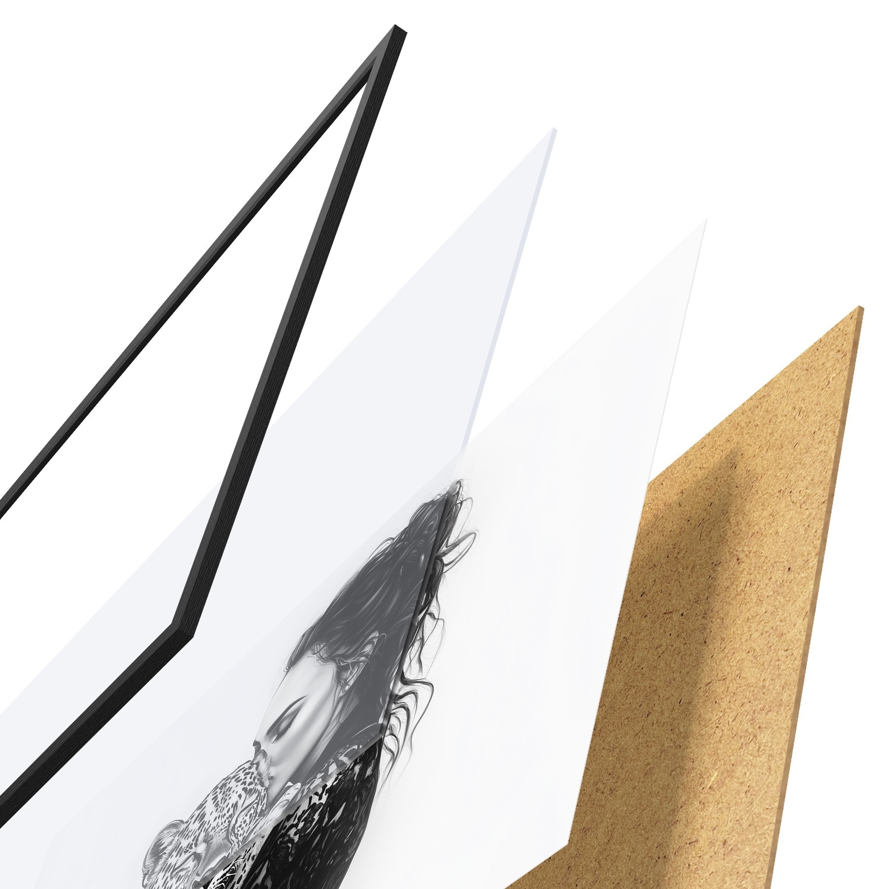 Le poster se compose d'un cadre, d'un plexiglas, d'une image imprimée et d'un support en aggloméré. Le poster peut être immédiatement accroché au mur grâce aux fixations au dos.