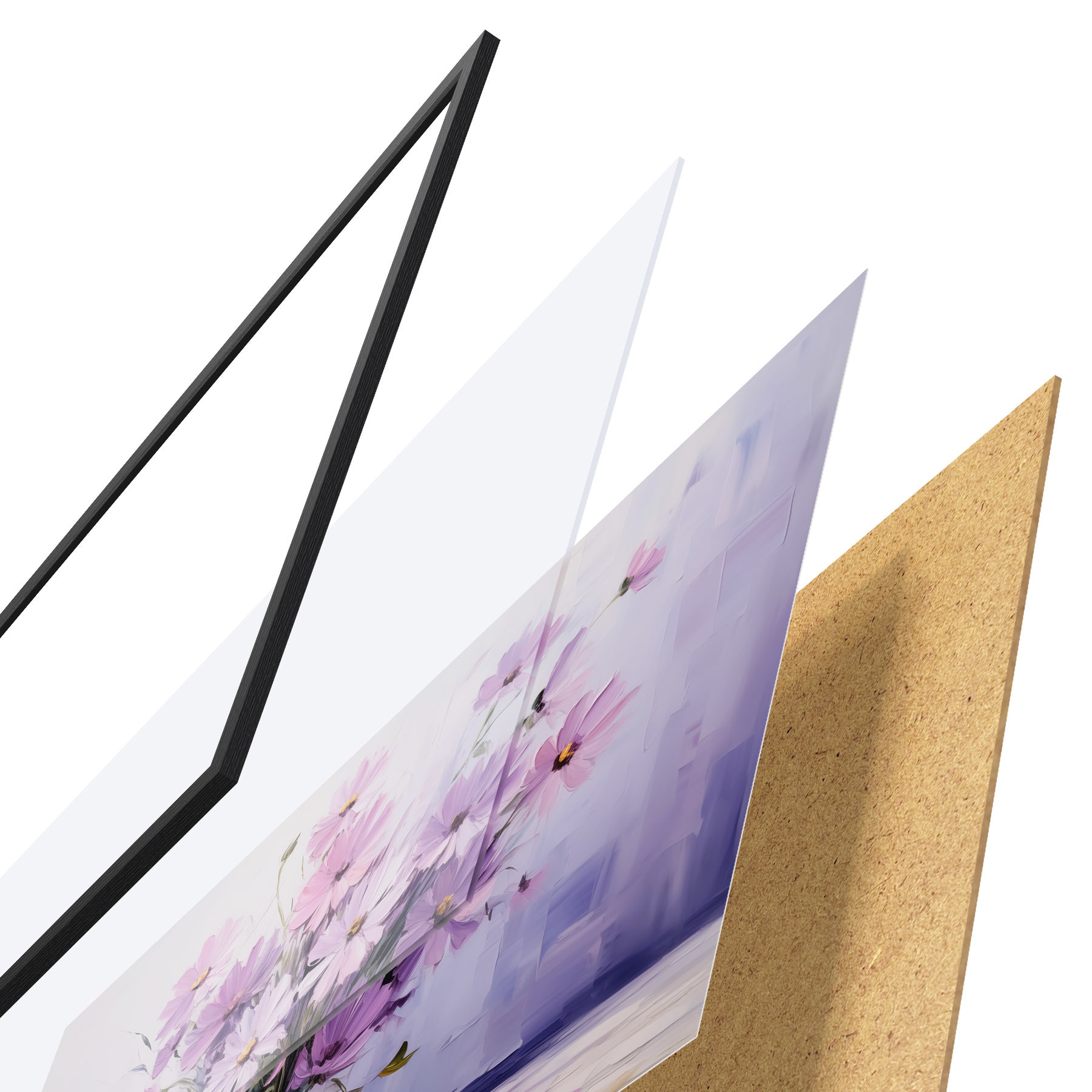Le poster se compose d'un cadre, d'un plexiglas, d'une image imprimée et d'un support en aggloméré. Le poster peut être immédiatement accroché au mur grâce aux fixations au dos.