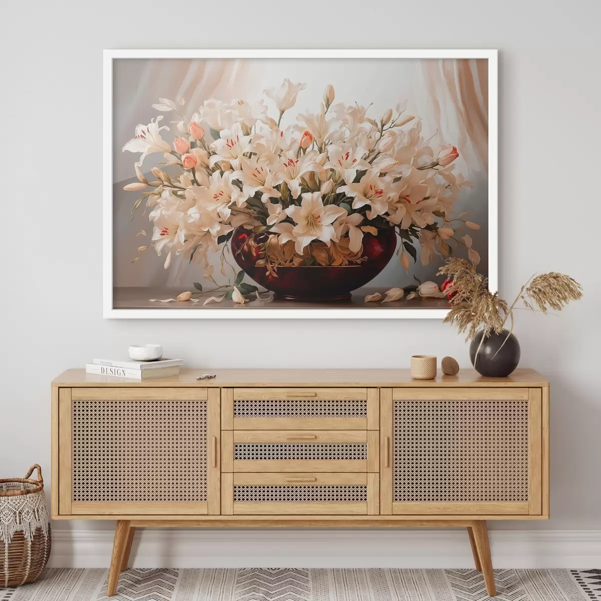 Affiche Bouquet de fleurs dans un vase volumétrique rouge f41510