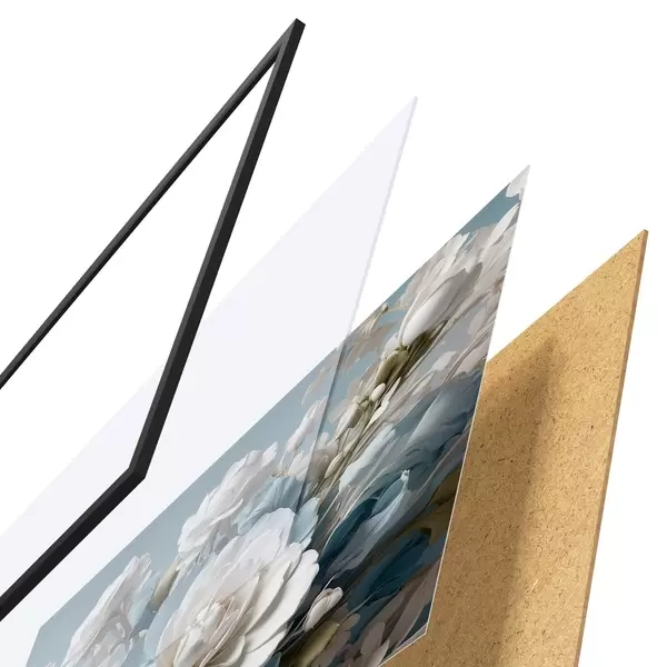 Le poster se compose d'un cadre, d'un plexiglas, d'une image imprimée et d'un support en aggloméré. Le poster peut être immédiatement accroché au mur grâce aux fixations au dos.
