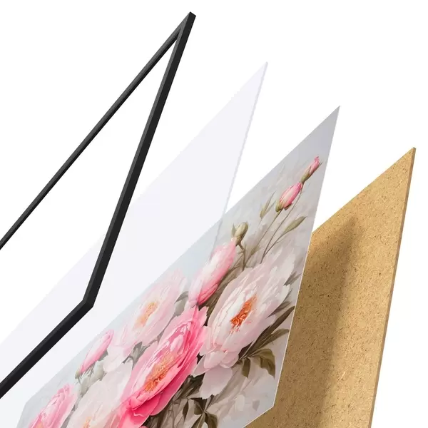 Le poster se compose d'un cadre, d'un plexiglas, d'une image imprimée et d'un support en aggloméré. Le poster peut être immédiatement accroché au mur grâce aux fixations au dos.