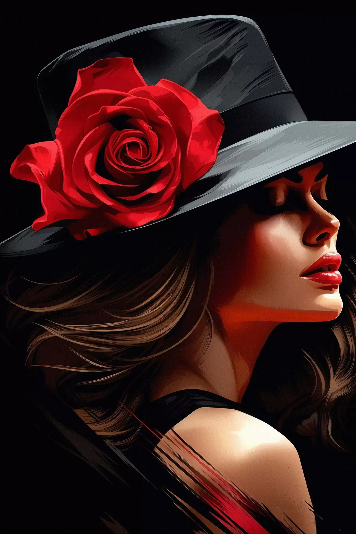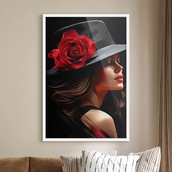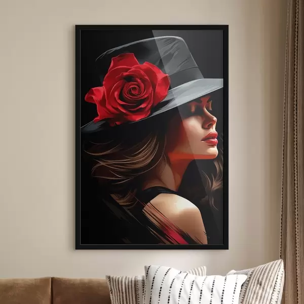 Affiche Illustration fille au chapeau avec une belle rose chic f41546