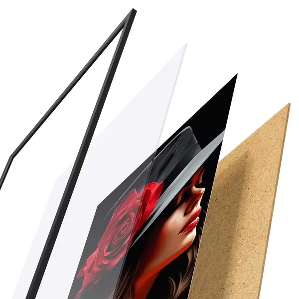 Le poster se compose d'un cadre, d'un plexiglas, d'une image imprimée et d'un support en aggloméré. Le poster peut être immédiatement accroché au mur grâce aux fixations au dos.
