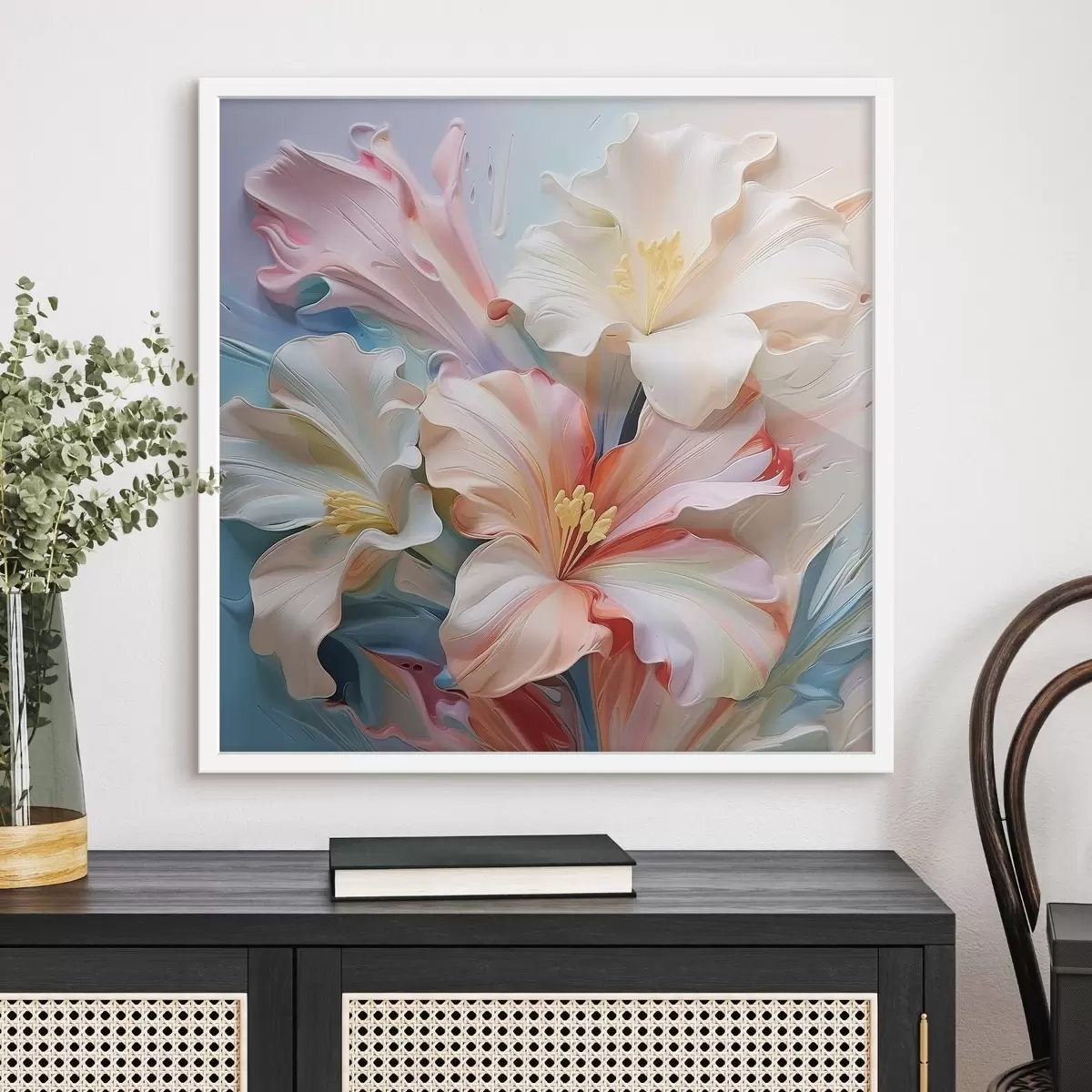 Trois types de matériaux peuvent être commandés : Economic Canvas - matériau dense et durable pour l'impression numérique, identique à la toile de peintre, surface imperméable, reproduction réaliste des détails, matériau à grain moyen. Premium Canvas - la texture ressemble à celle d'une toile de peintre (petits fils entrelacés). Reproduction douce et détaillée de l'image sur une surface mate. Eco-Premium - tissu 100 % coton de haute qualité. Grâce aux fibres naturelles de coton, le matériau est durable et résistant à l'usure. Excellente reproduction des couleurs et des détails.