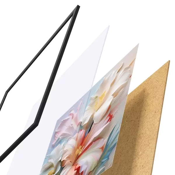 Le poster se compose d'un cadre, d'un plexiglas, d'une image imprimée et d'un support en aggloméré. Le poster peut être immédiatement accroché au mur grâce aux fixations au dos.