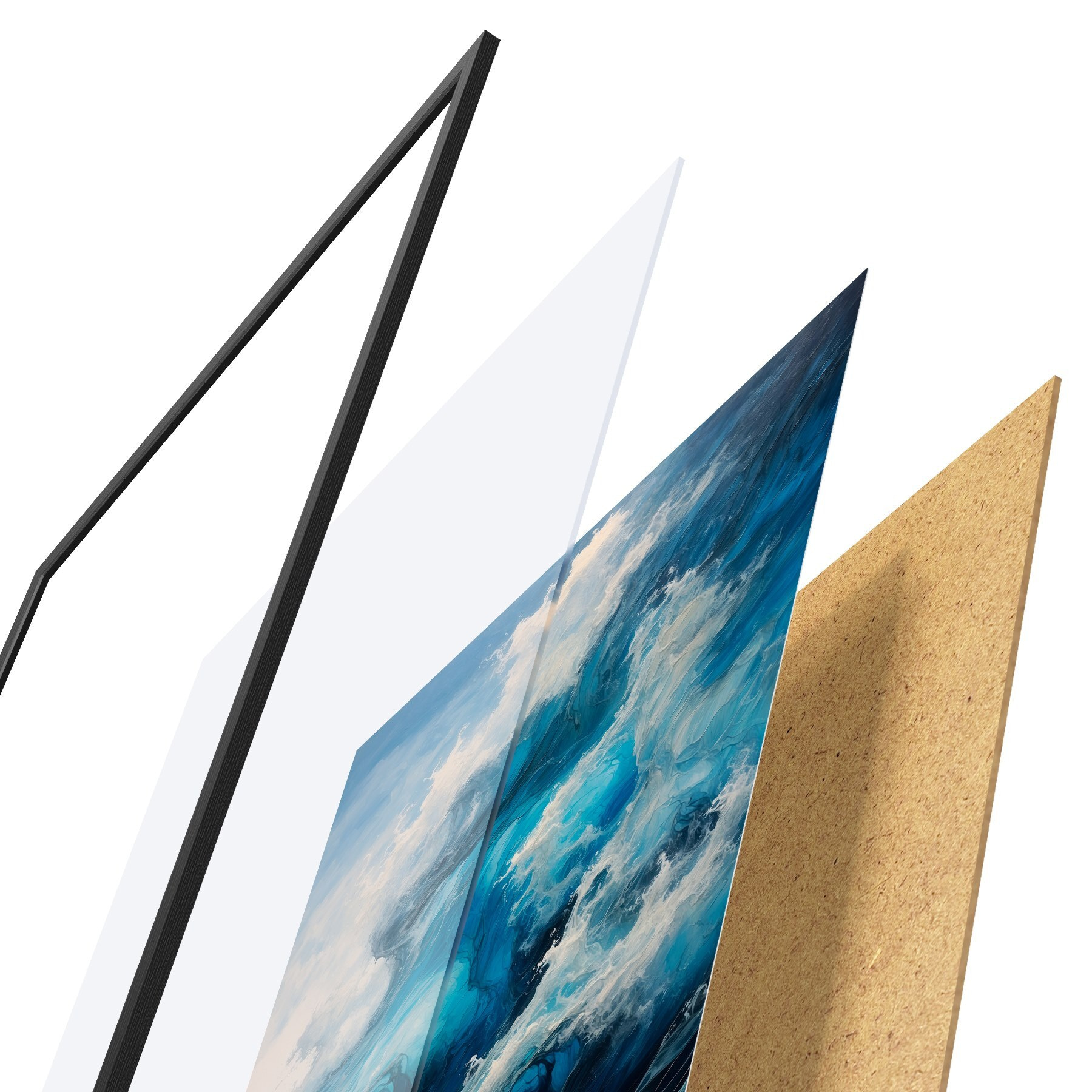 Le poster se compose d'un cadre, d'un plexiglas, d'une image imprimée et d'un support en aggloméré. Le poster peut être immédiatement accroché au mur grâce aux fixations au dos.