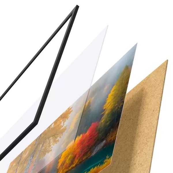 Le poster se compose d'un cadre, d'un plexiglas, d'une image imprimée et d'un support en aggloméré. Le poster peut être immédiatement accroché au mur grâce aux fixations au dos.