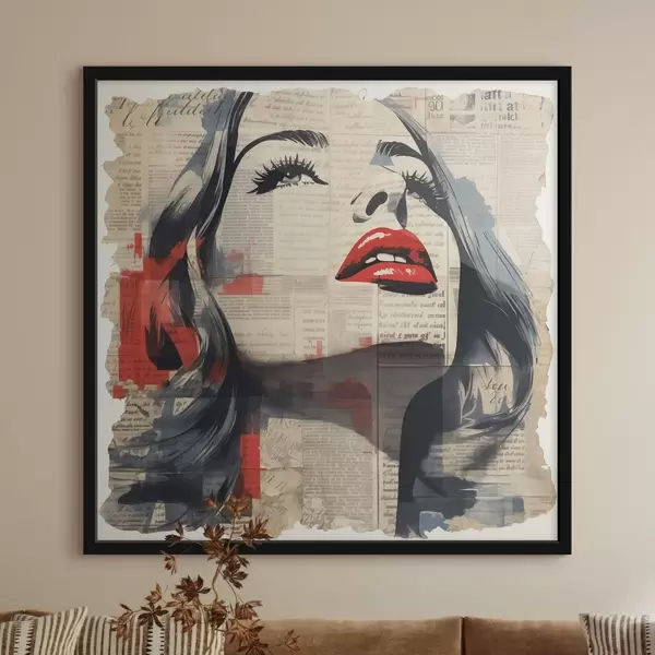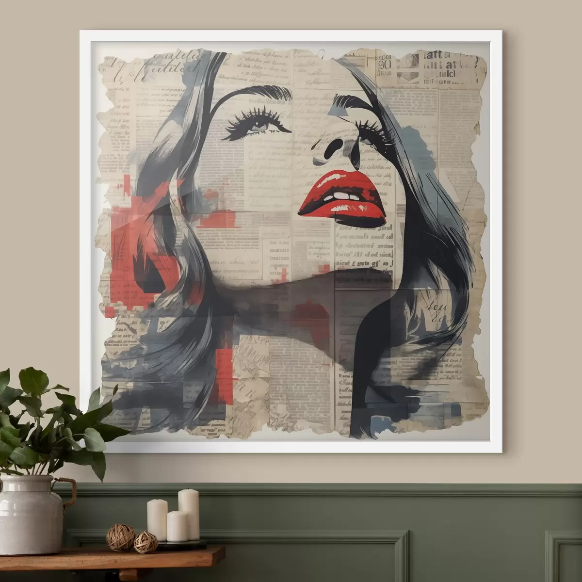 Affiche Portrait d'une fille sur un vieux journal en style collage f41619