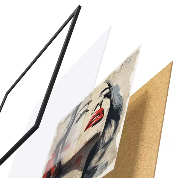 Le poster se compose d'un cadre, d'un plexiglas, d'une image imprimée et d'un support en aggloméré. Le poster peut être immédiatement accroché au mur grâce aux fixations au dos.