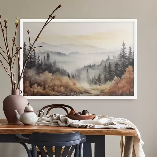 Affiche Belle montagne brumeuse, forêt d'automne, aquarelle f41646