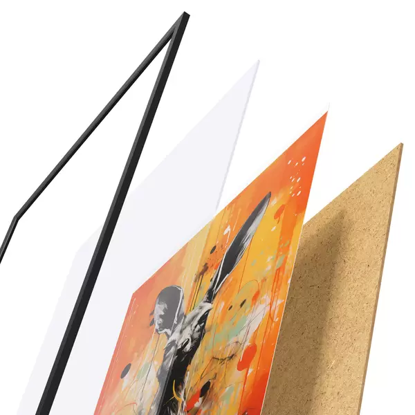 Le poster se compose d'un cadre, d'un plexiglas, d'une image imprimée et d'un support en aggloméré. Le poster peut être immédiatement accroché au mur grâce aux fixations au dos.