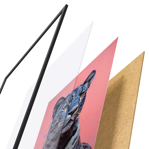 Le poster se compose d'un cadre, d'un plexiglas, d'une image imprimée et d'un support en aggloméré. Le poster peut être immédiatement accroché au mur grâce aux fixations au dos.
