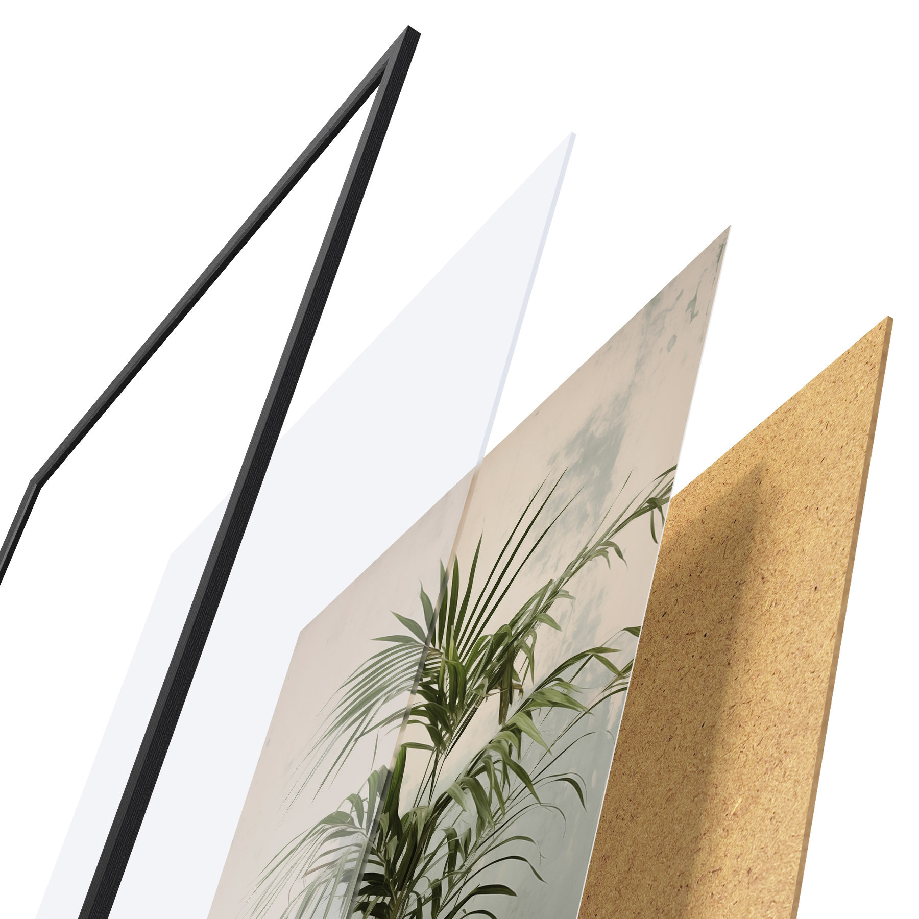 Le poster se compose d'un cadre, d'un plexiglas, d'une image imprimée et d'un support en aggloméré. Le poster peut être immédiatement accroché au mur grâce aux fixations au dos.
