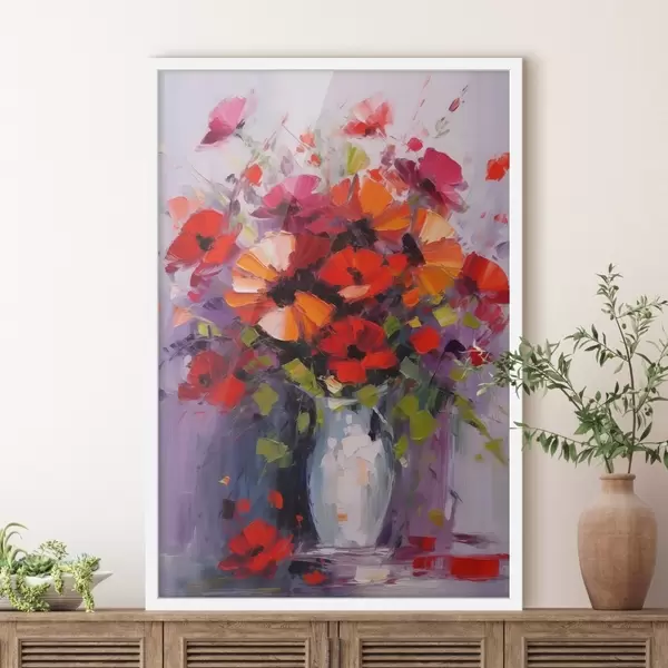 Le poster se compose d'un cadre, d'un plexiglas, d'une image imprimée et d'un support en aggloméré. Le poster peut être immédiatement accroché au mur grâce aux fixations au dos.