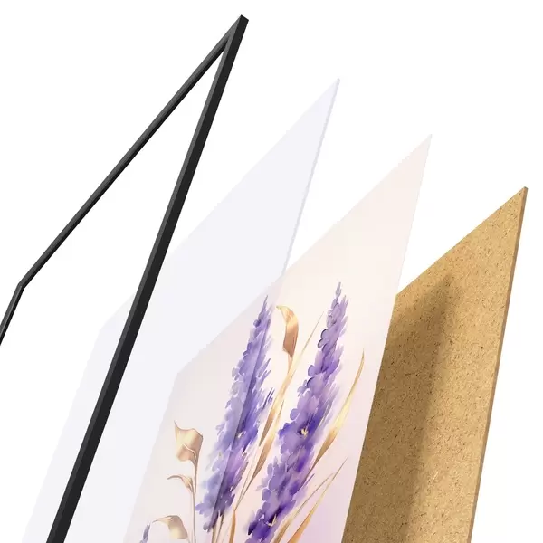 Le poster se compose d'un cadre, d'un plexiglas, d'une image imprimée et d'un support en aggloméré. Le poster peut être immédiatement accroché au mur grâce aux fixations au dos.