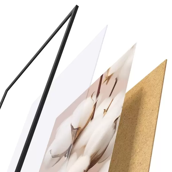 Le poster se compose d'un cadre, d'un plexiglas, d'une image imprimée et d'un support en aggloméré. Le poster peut être immédiatement accroché au mur grâce aux fixations au dos.