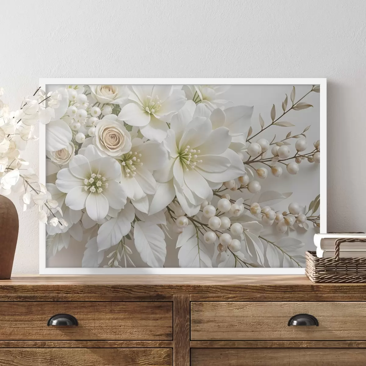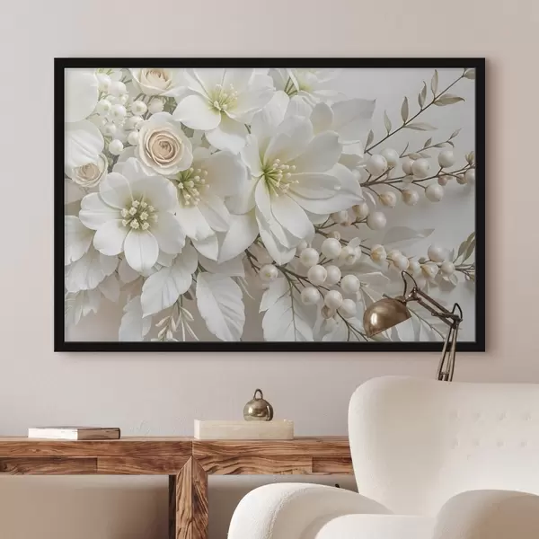Affiche Fleurs blanches délicates, y compris lys, roses et autres fleurs aux pétales doux et veloutés f41722
