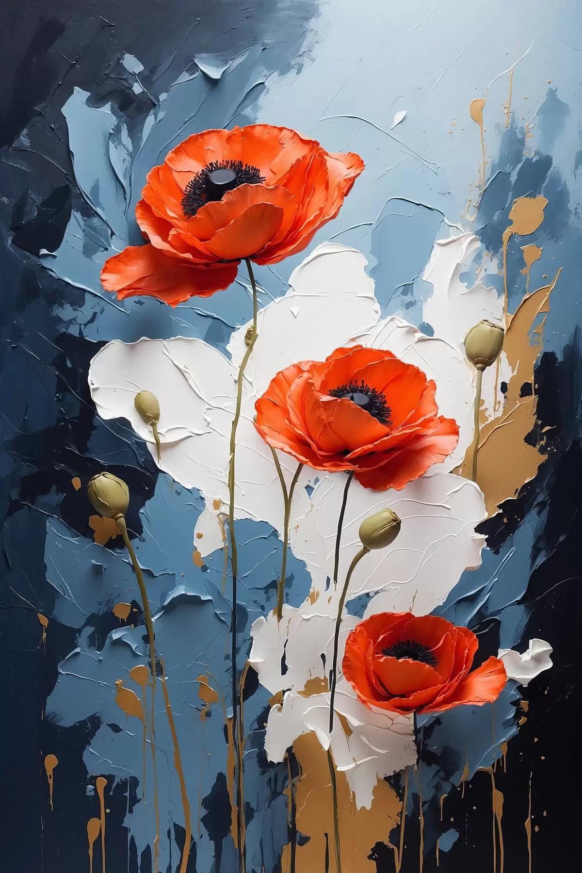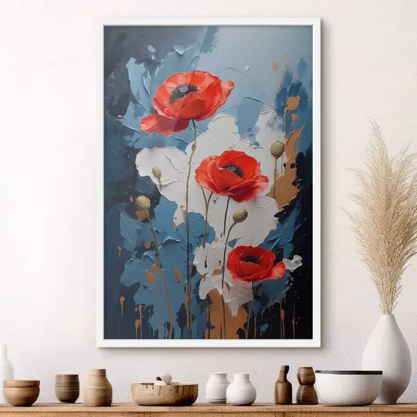 Affiche Coquelicots sur fond abstrait multicolore dans le style de la peinture à l'huile Non f41765