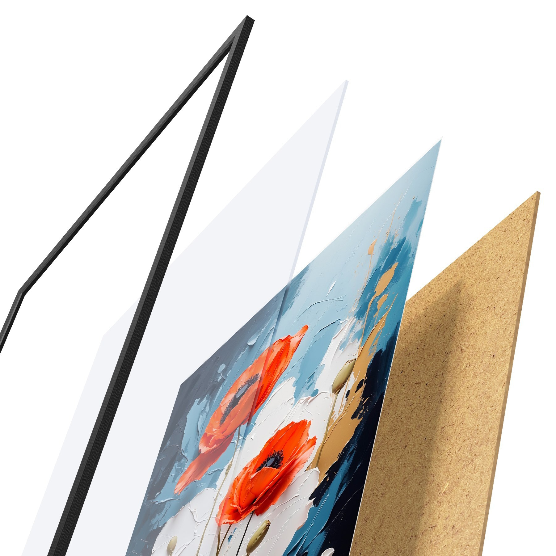Le poster se compose d'un cadre, d'un plexiglas, d'une image imprimée et d'un support en aggloméré. Le poster peut être immédiatement accroché au mur grâce aux fixations au dos.
