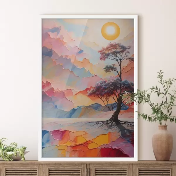 Affiche Arbre et soleil sur fond abstrait en style acrylique Non f41771