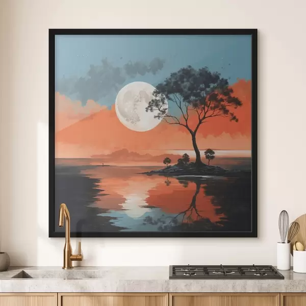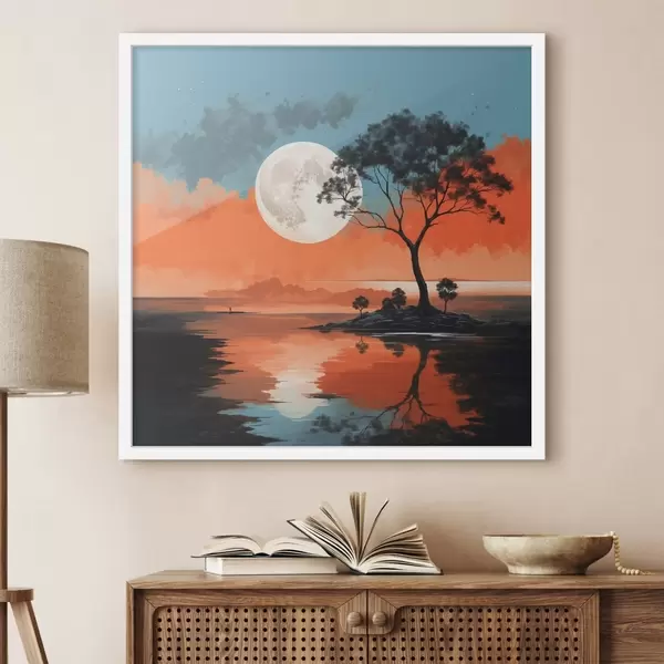 Affiche Arbre au milieu d'un lac sur fond de lune f41775