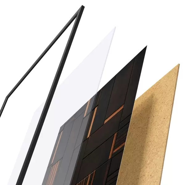 Le poster se compose d'un cadre, d'un plexiglas, d'une image imprimée et d'un support en aggloméré. Le poster peut être immédiatement accroché au mur grâce aux fixations au dos.