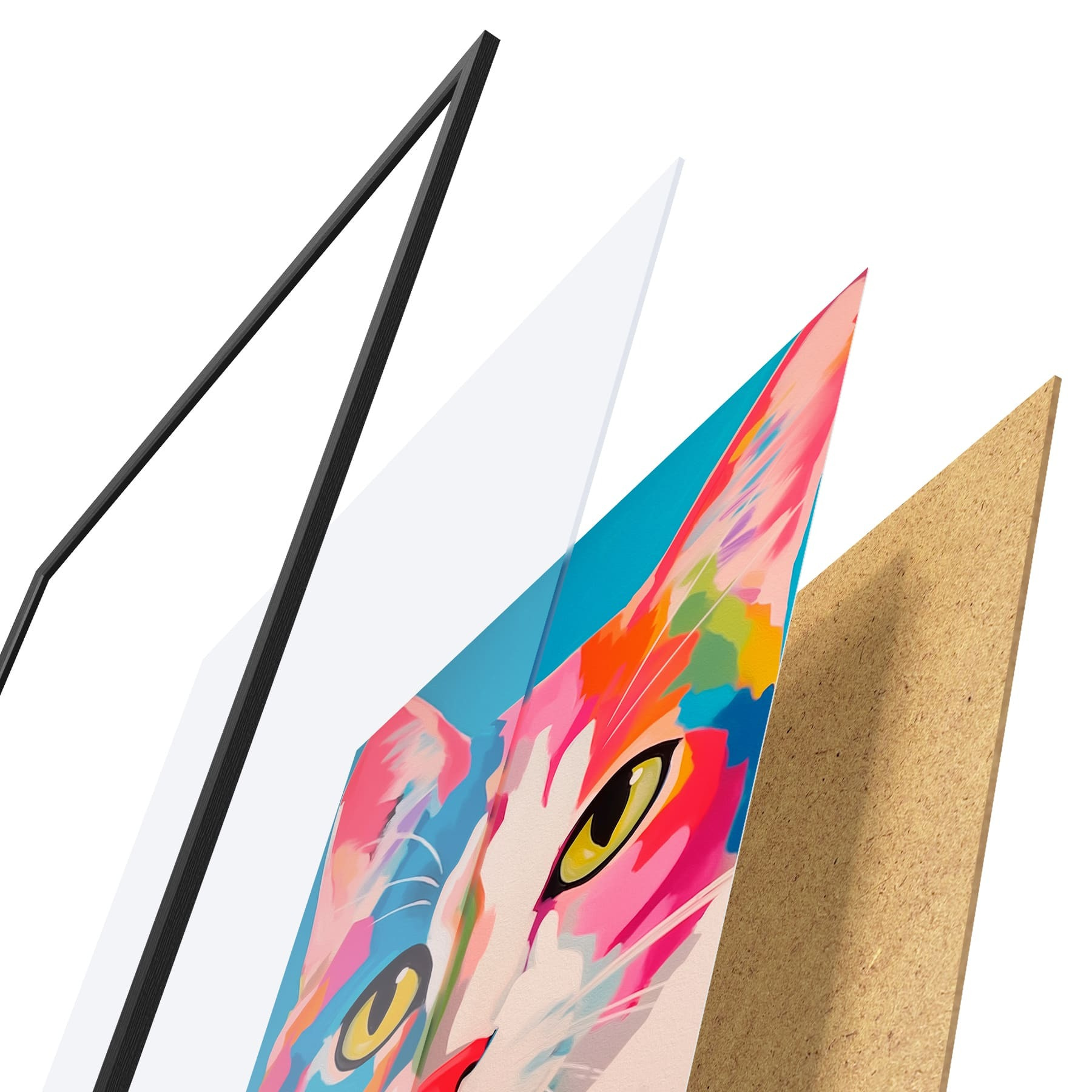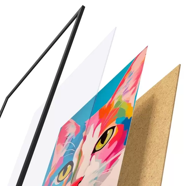 Le poster se compose d'un cadre, d'un plexiglas, d'une image imprimée et d'un support en aggloméré. Le poster peut être immédiatement accroché au mur grâce aux fixations au dos.