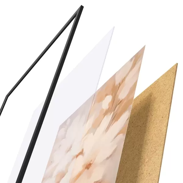 Le poster se compose d'un cadre, d'un plexiglas, d'une image imprimée et d'un support en aggloméré. Le poster peut être immédiatement accroché au mur grâce aux fixations au dos.