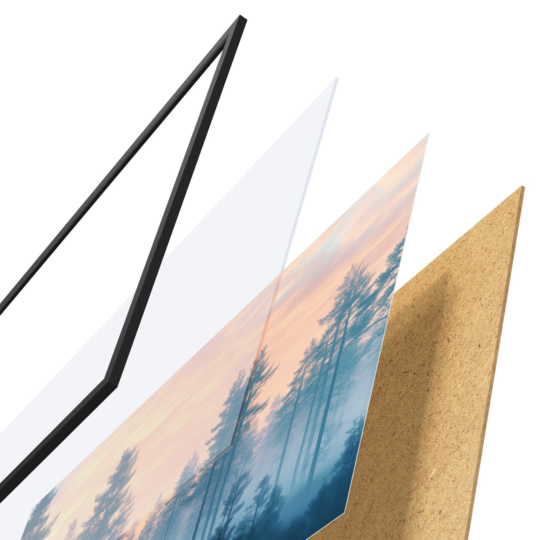 Le poster se compose d'un cadre, d'un plexiglas, d'une image imprimée et d'un support en aggloméré. Le poster peut être immédiatement accroché au mur grâce aux fixations au dos.