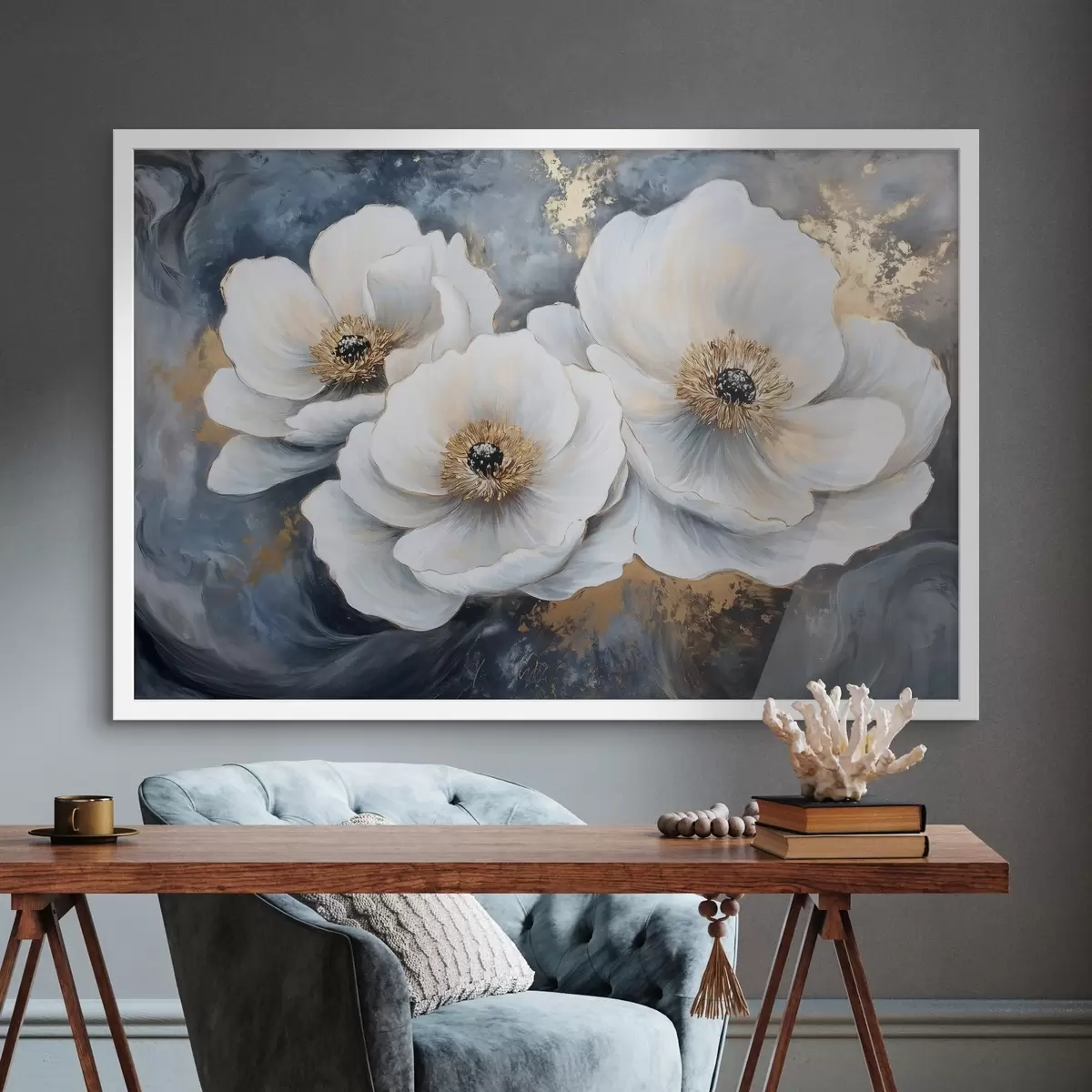 Affiche Fleurs blanches et délicates sur fond de touches de peinture à l'huile Non f41833