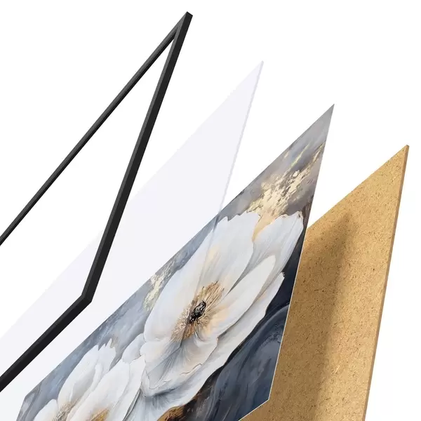 Le poster se compose d'un cadre, d'un plexiglas, d'une image imprimée et d'un support en aggloméré. Le poster peut être immédiatement accroché au mur grâce aux fixations au dos.