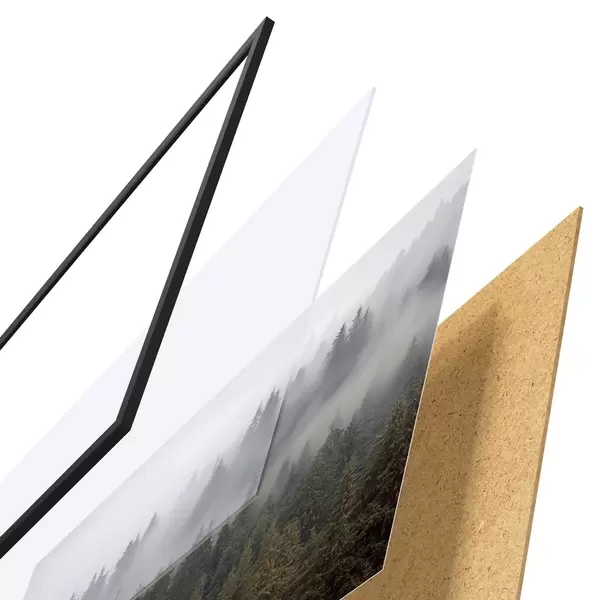 Le poster se compose d'un cadre, d'un plexiglas, d'une image imprimée et d'un support en aggloméré. Le poster peut être immédiatement accroché au mur grâce aux fixations au dos.
