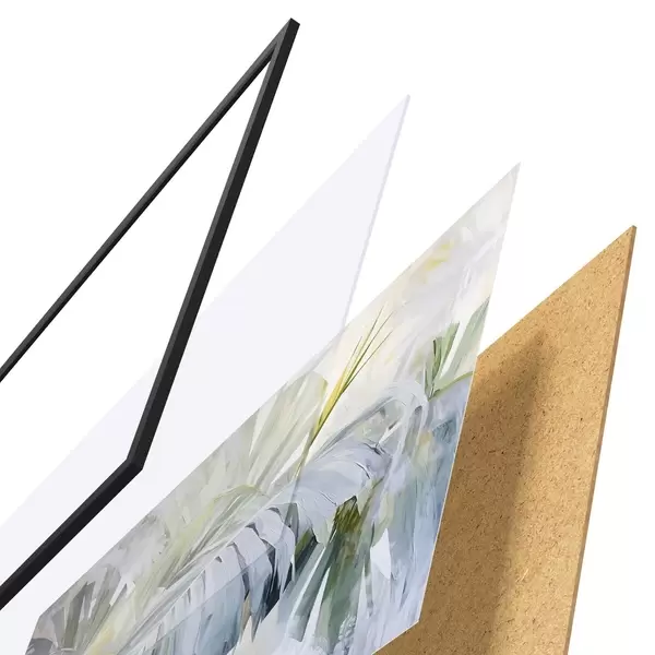 Le poster se compose d'un cadre, d'un plexiglas, d'une image imprimée et d'un support en aggloméré. Le poster peut être immédiatement accroché au mur grâce aux fixations au dos.