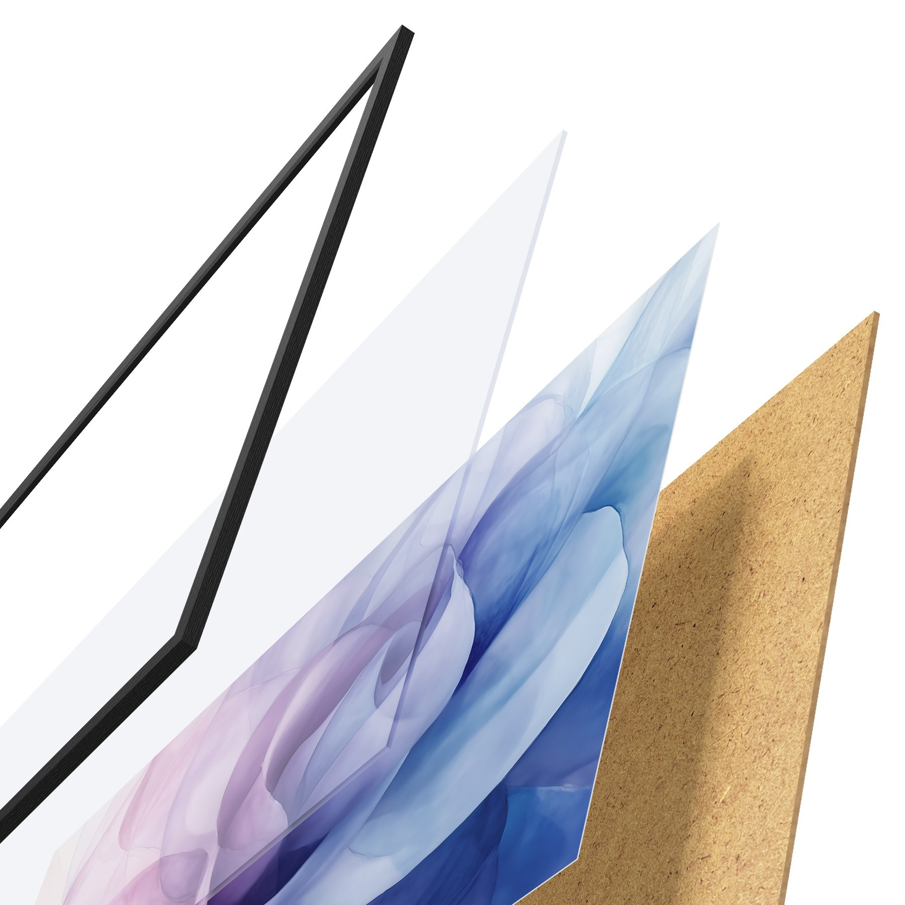Le poster se compose d'un cadre, d'un plexiglas, d'une image imprimée et d'un support en aggloméré. Le poster peut être immédiatement accroché au mur grâce aux fixations au dos.