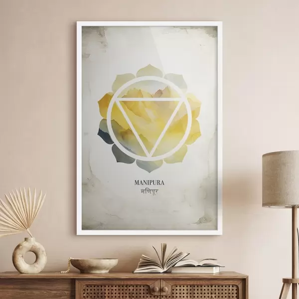 Affiche Manipura chakra, chakra jaune, ésotérique, méditation, bouddhisme, aquarelle montagnes f41882