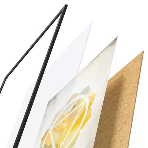 Le poster se compose d'un cadre, d'un plexiglas, d'une image imprimée et d'un support en aggloméré. Le poster peut être immédiatement accroché au mur grâce aux fixations au dos.