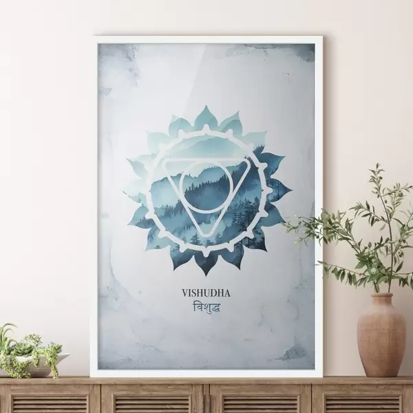 Affiche Vishuddha chakra, chakra bleu, ésotérique, méditation, bouddhisme, montagnes style aquarelle Non f41884