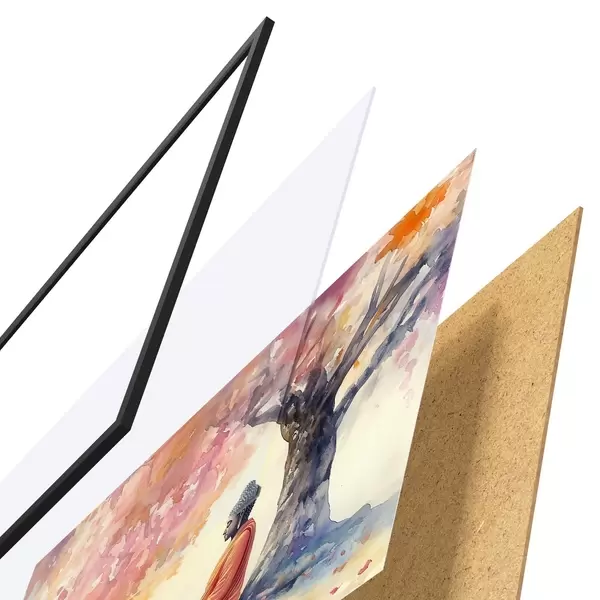 Affiche Bouddha méditant sous l'arbre, style aquarelle, automne, ésotérique Non f41887