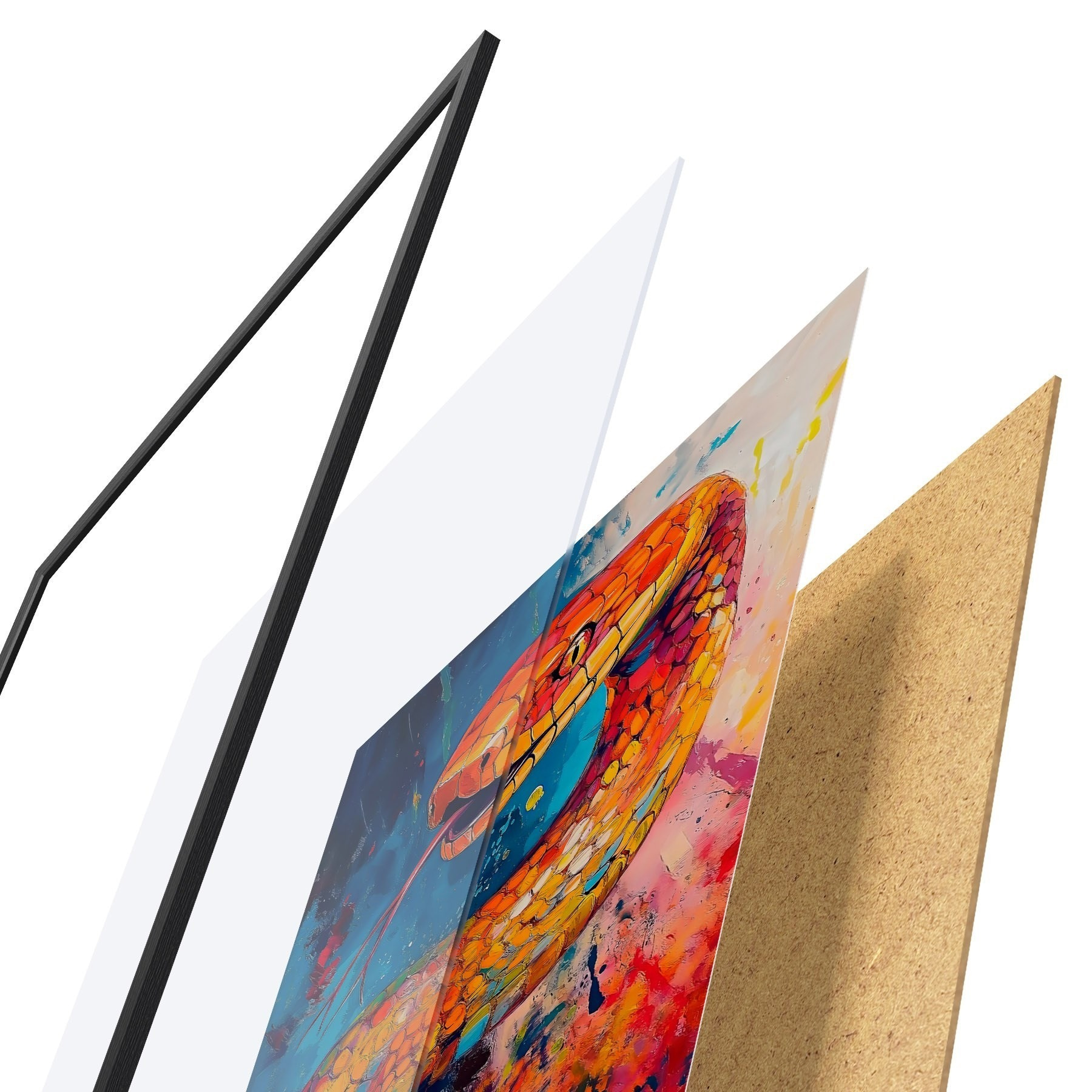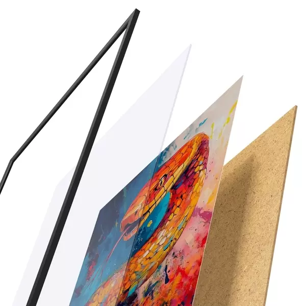 Le poster se compose d'un cadre, d'un plexiglas, d'une image imprimée et d'un support en aggloméré. Le poster peut être immédiatement accroché au mur grâce aux fixations au dos.