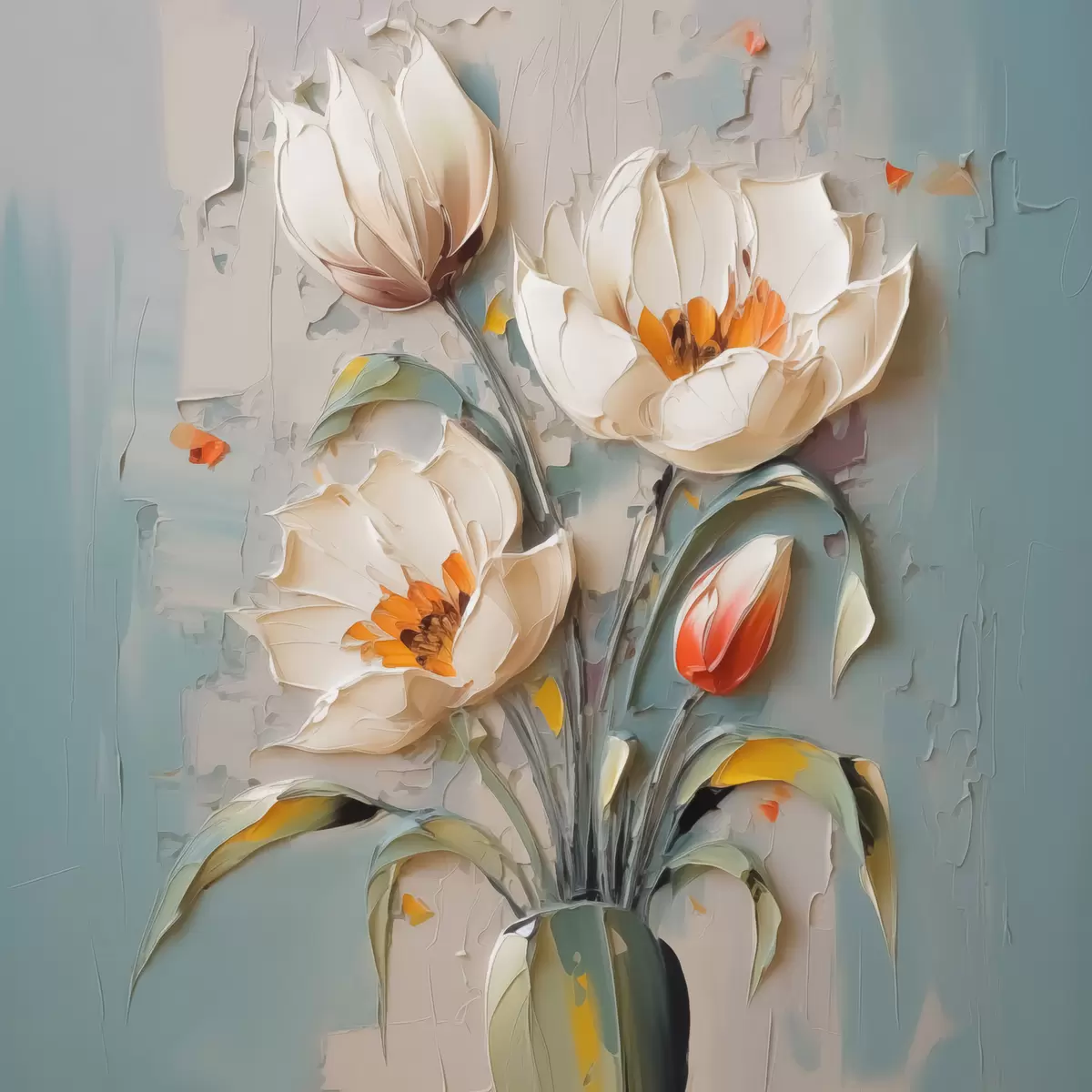 Affiche Imitation peinture de tulipes blanches dans un vase f41933