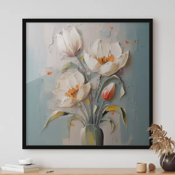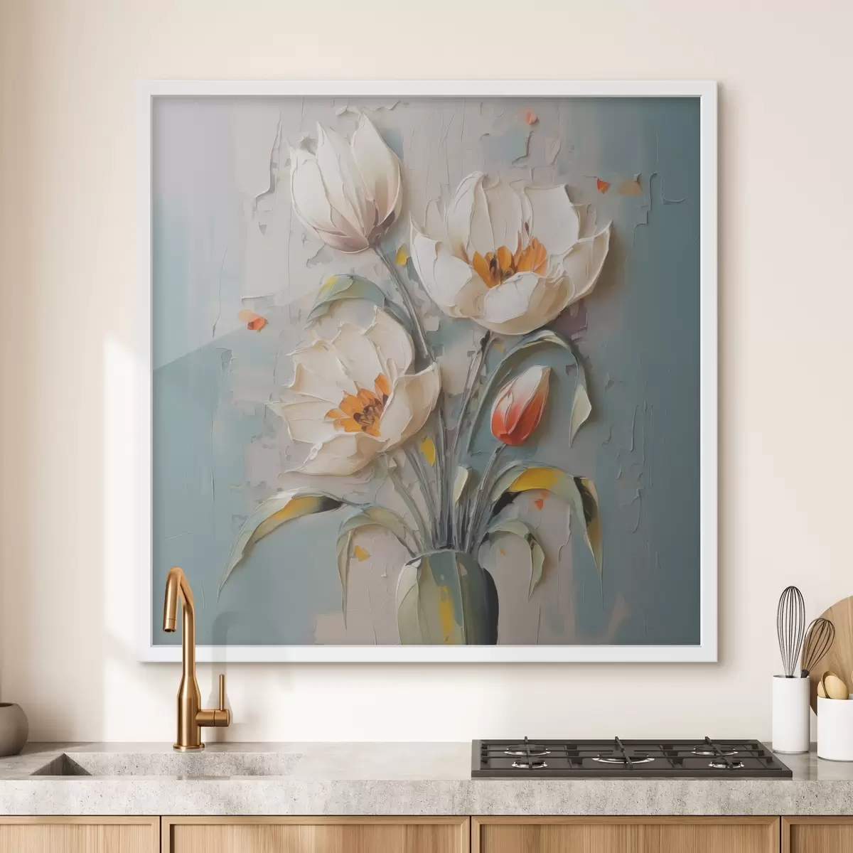 Affiche Imitation peinture de tulipes blanches dans un vase Non f41933