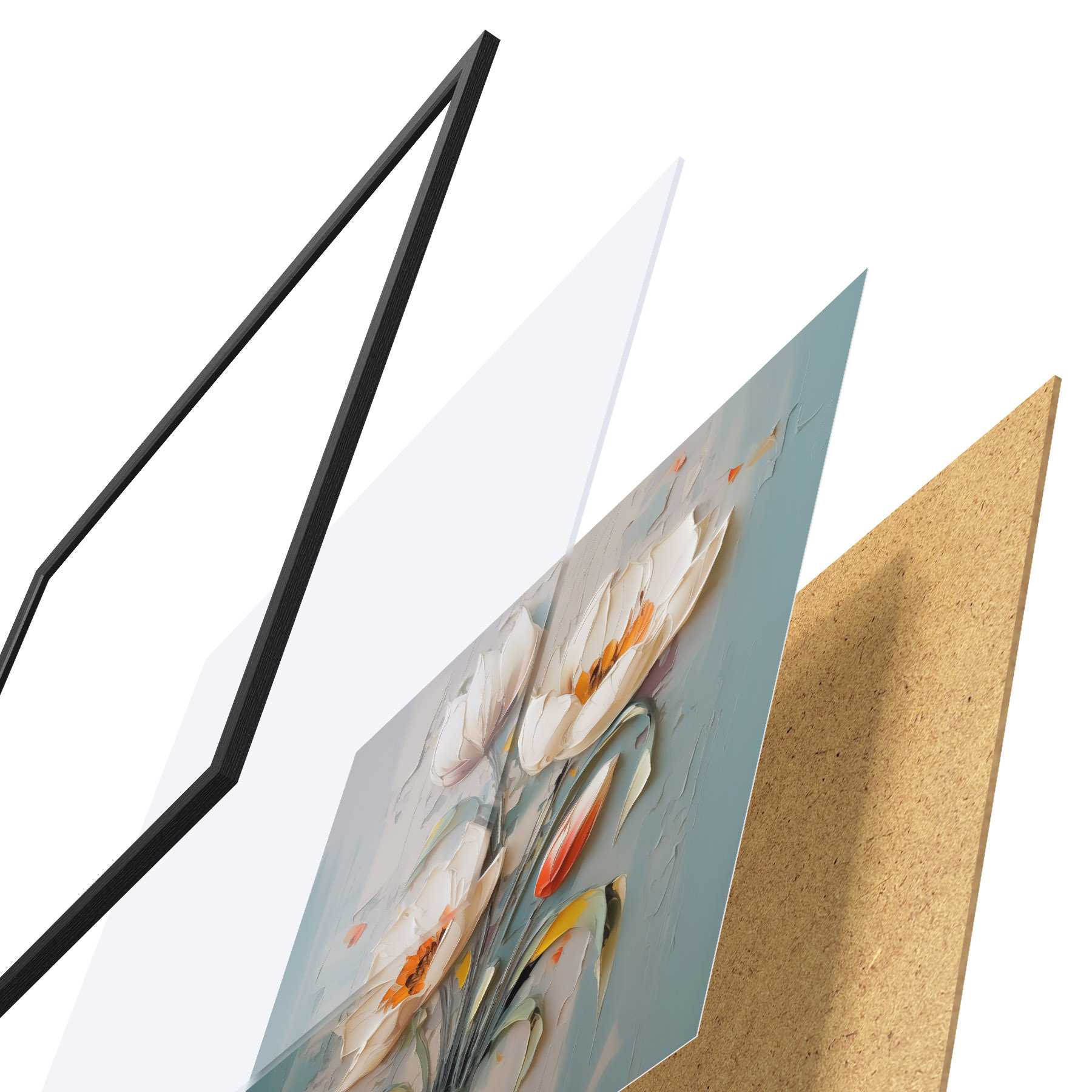Le poster se compose d'un cadre, d'un plexiglas, d'une image imprimée et d'un support en aggloméré. Le poster peut être immédiatement accroché au mur grâce aux fixations au dos.