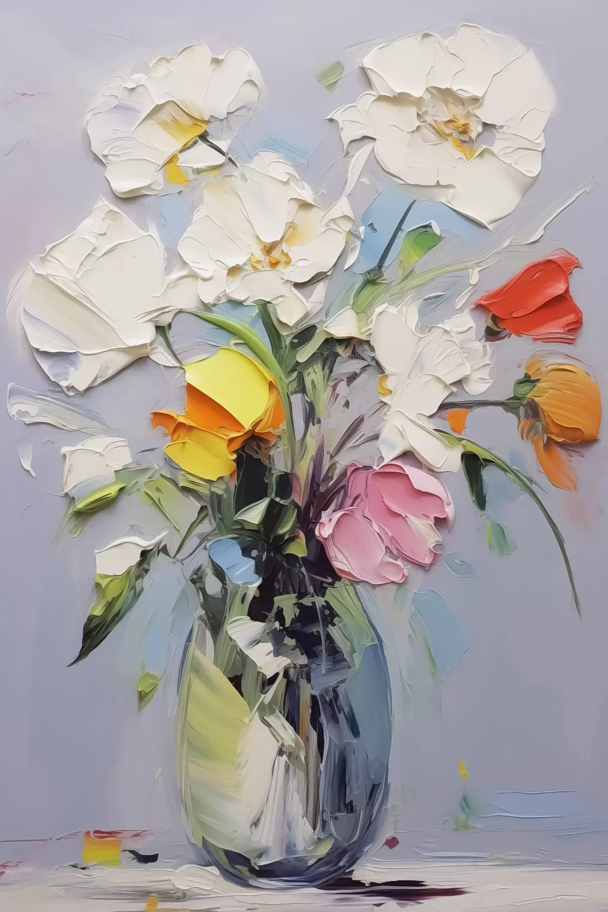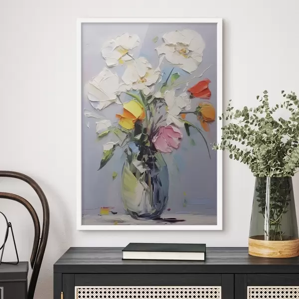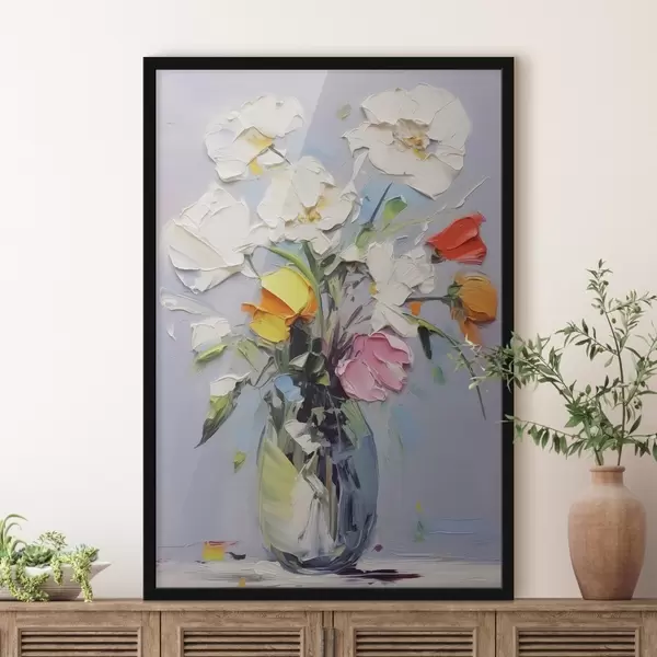 Affiche Bouquet abstrait de fleurs dans un vase imitation de traits de peinture Non f41936