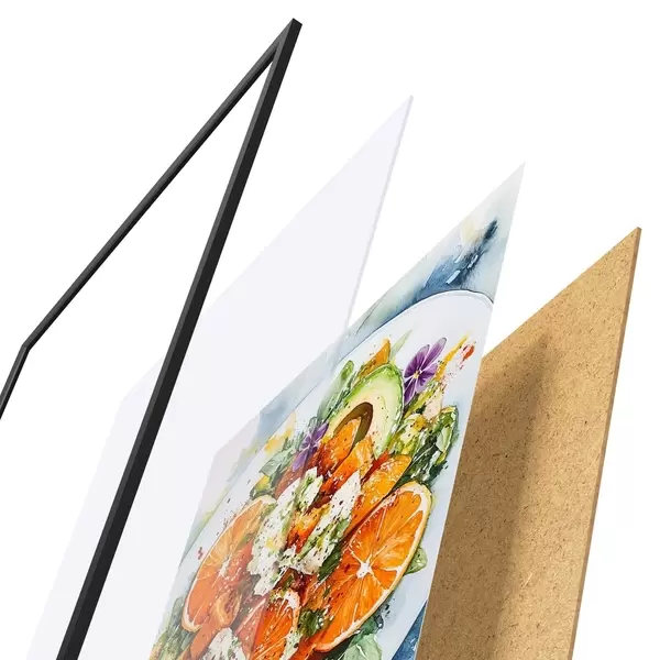 Le poster se compose d'un cadre, d'un plexiglas, d'une image imprimée et d'un support en aggloméré. Le poster peut être immédiatement accroché au mur grâce aux fixations au dos.