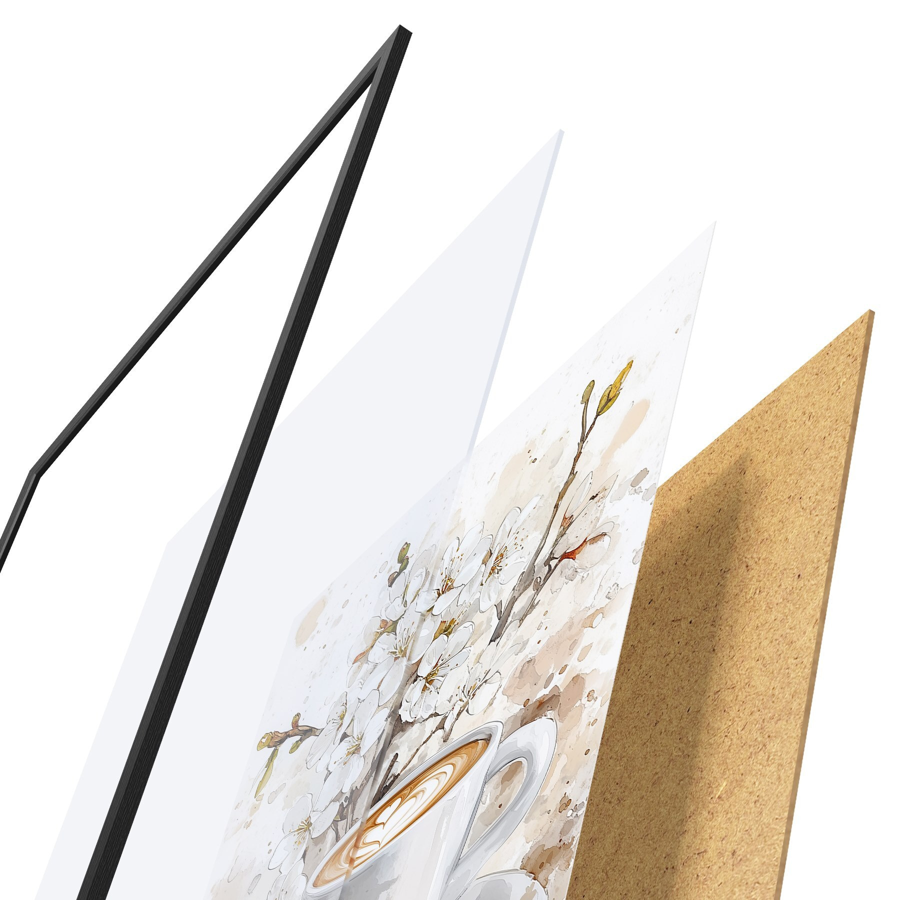 Le poster se compose d'un cadre, d'un plexiglas, d'une image imprimée et d'un support en aggloméré. Le poster peut être immédiatement accroché au mur grâce aux fixations au dos.