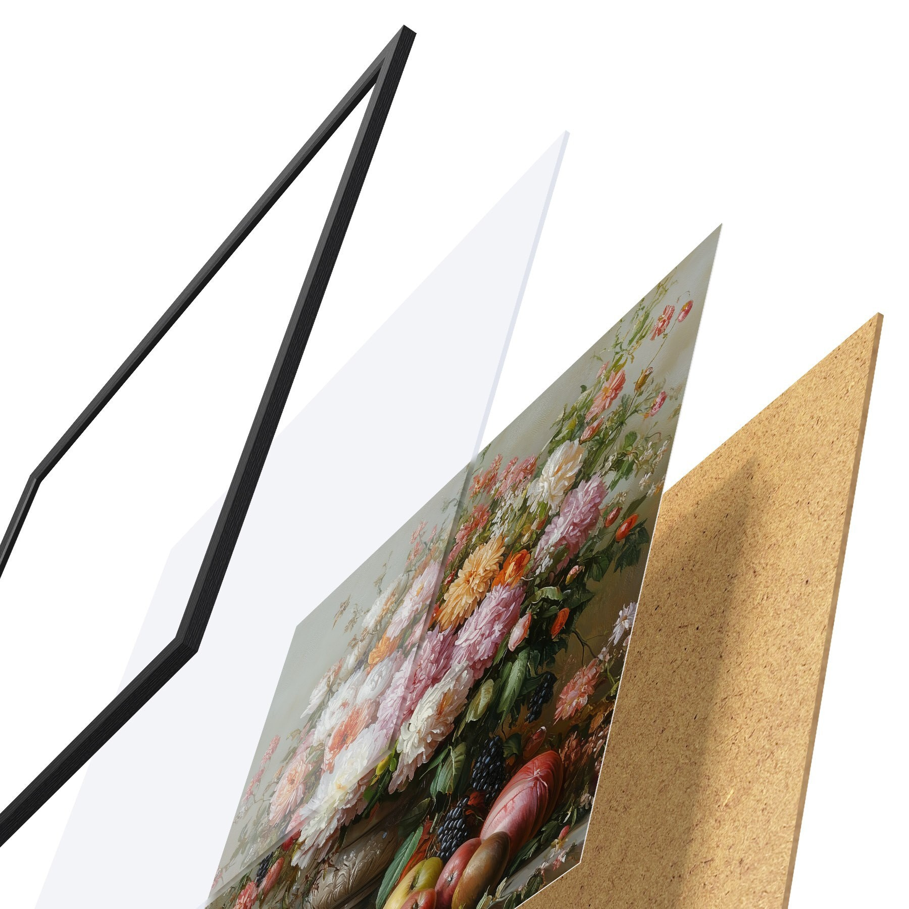 Le poster se compose d'un cadre, d'un plexiglas, d'une image imprimée et d'un support en aggloméré. Le poster peut être immédiatement accroché au mur grâce aux fixations au dos.