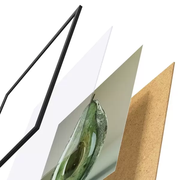 Le poster se compose d'un cadre, d'un plexiglas, d'une image imprimée et d'un support en aggloméré. Le poster peut être immédiatement accroché au mur grâce aux fixations au dos.