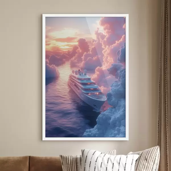 Affiche Bateau de croisière sur fond de coucher de soleil rose Non f42085